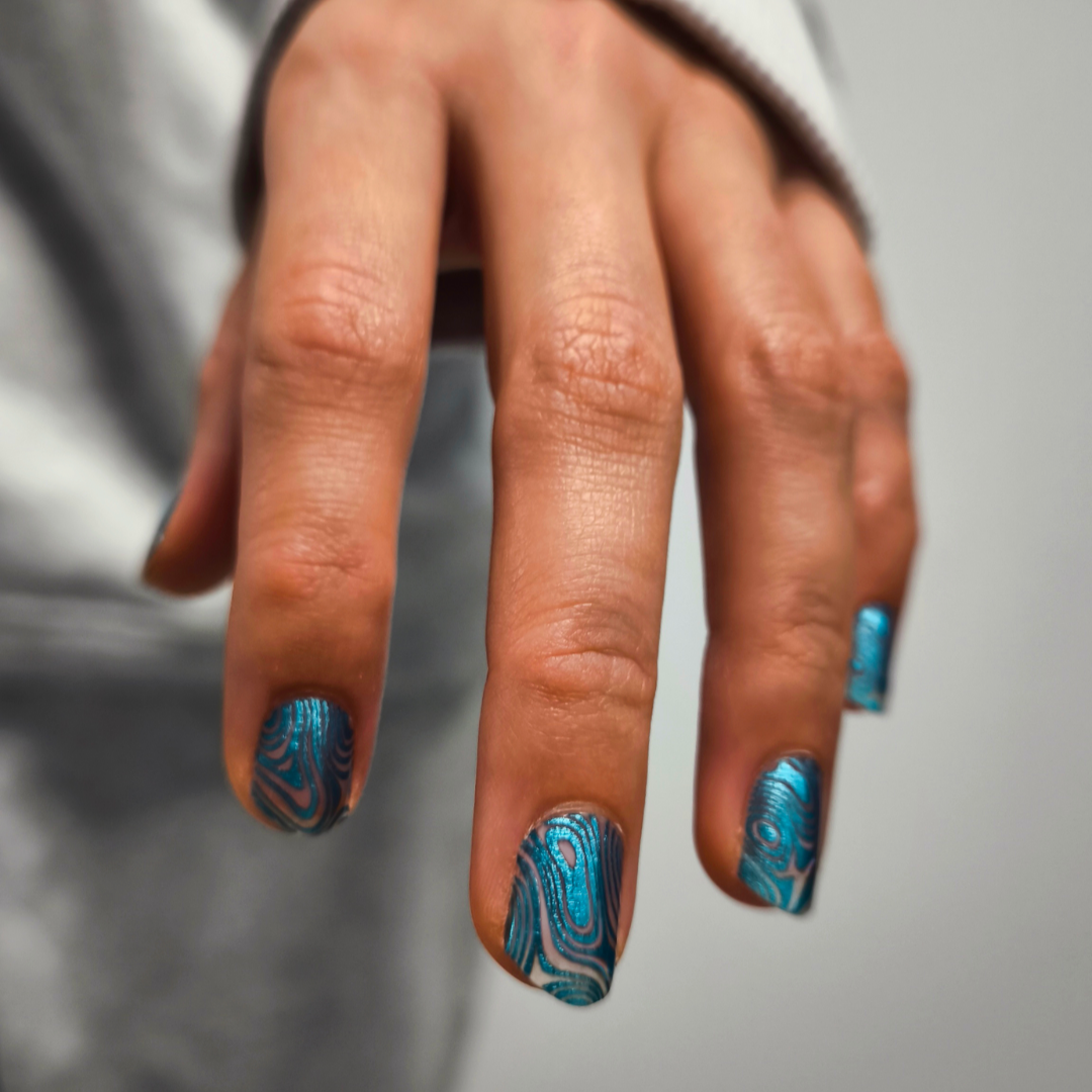 Un azul metálico intenso que captura todas las miradas. Su diseño único añade un toque audaz y sofisticado a tu estilo.