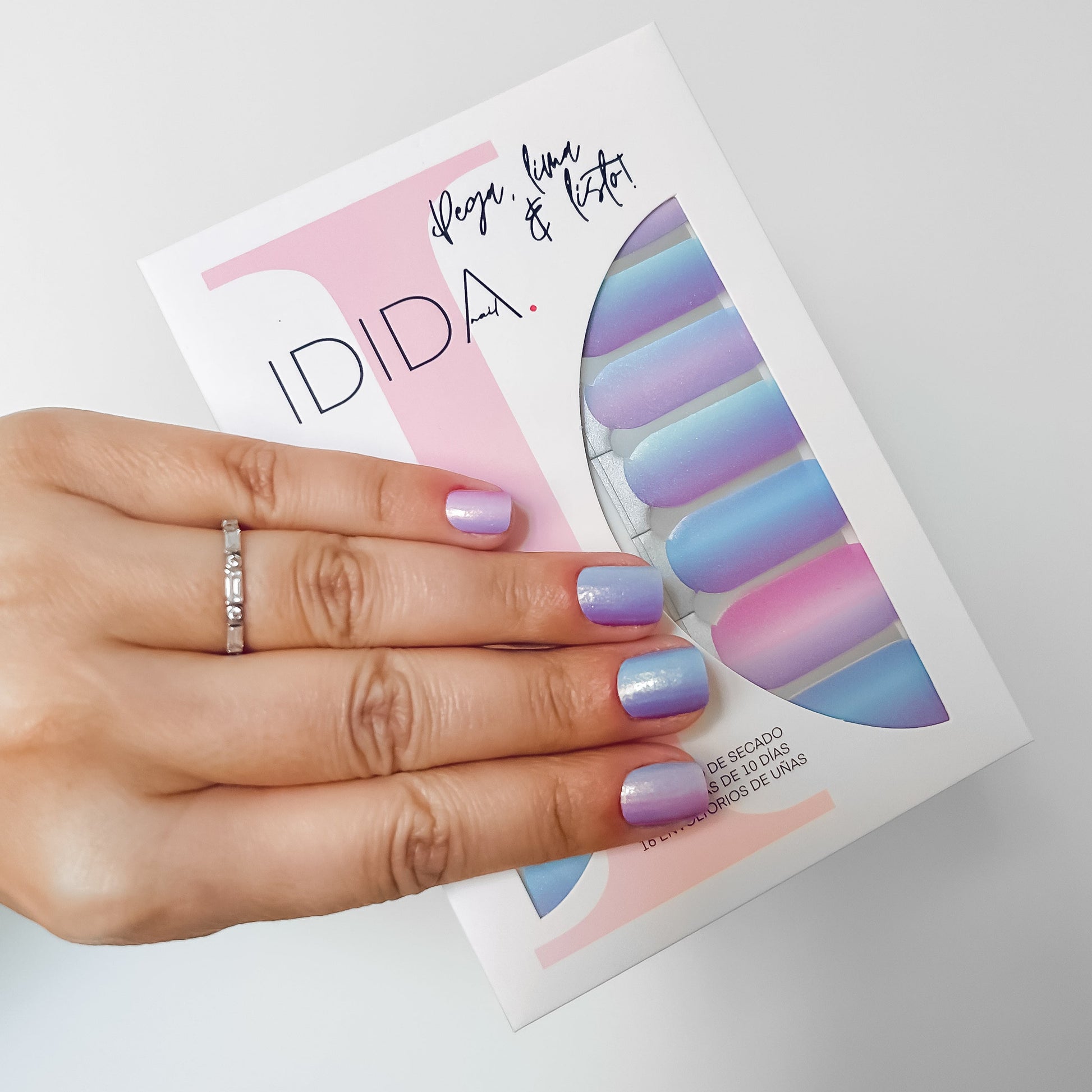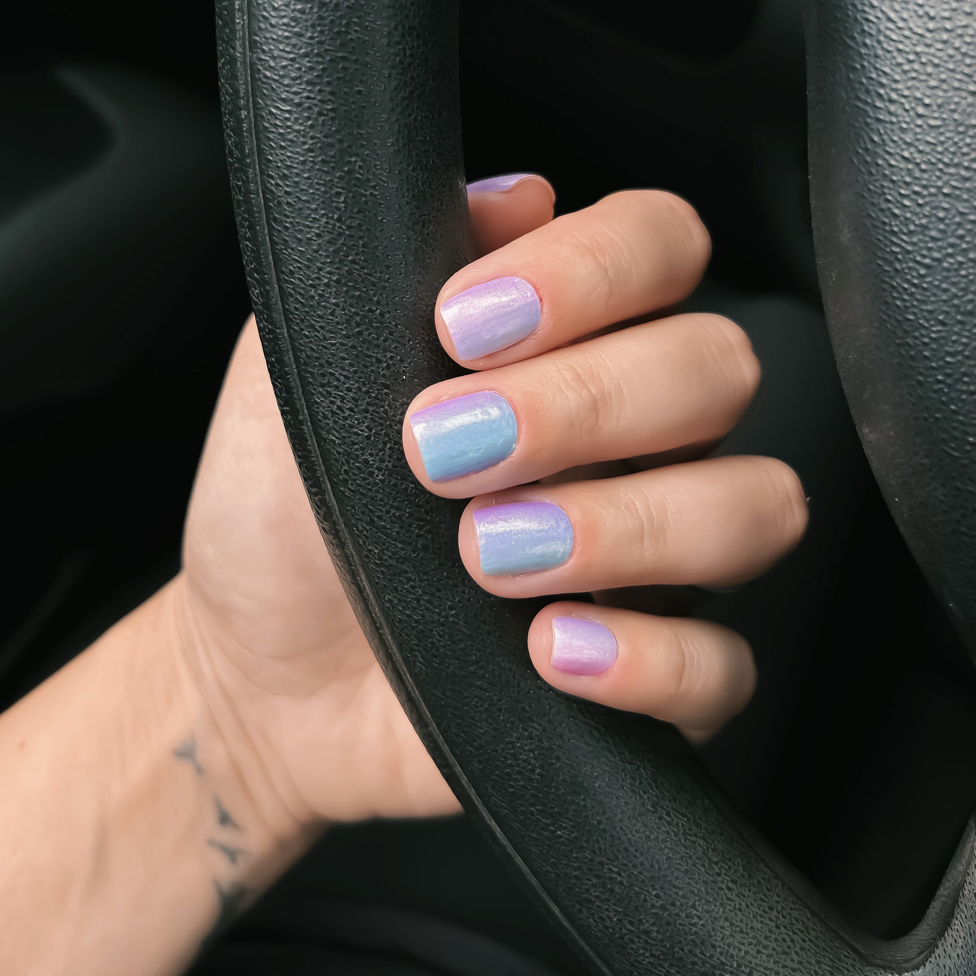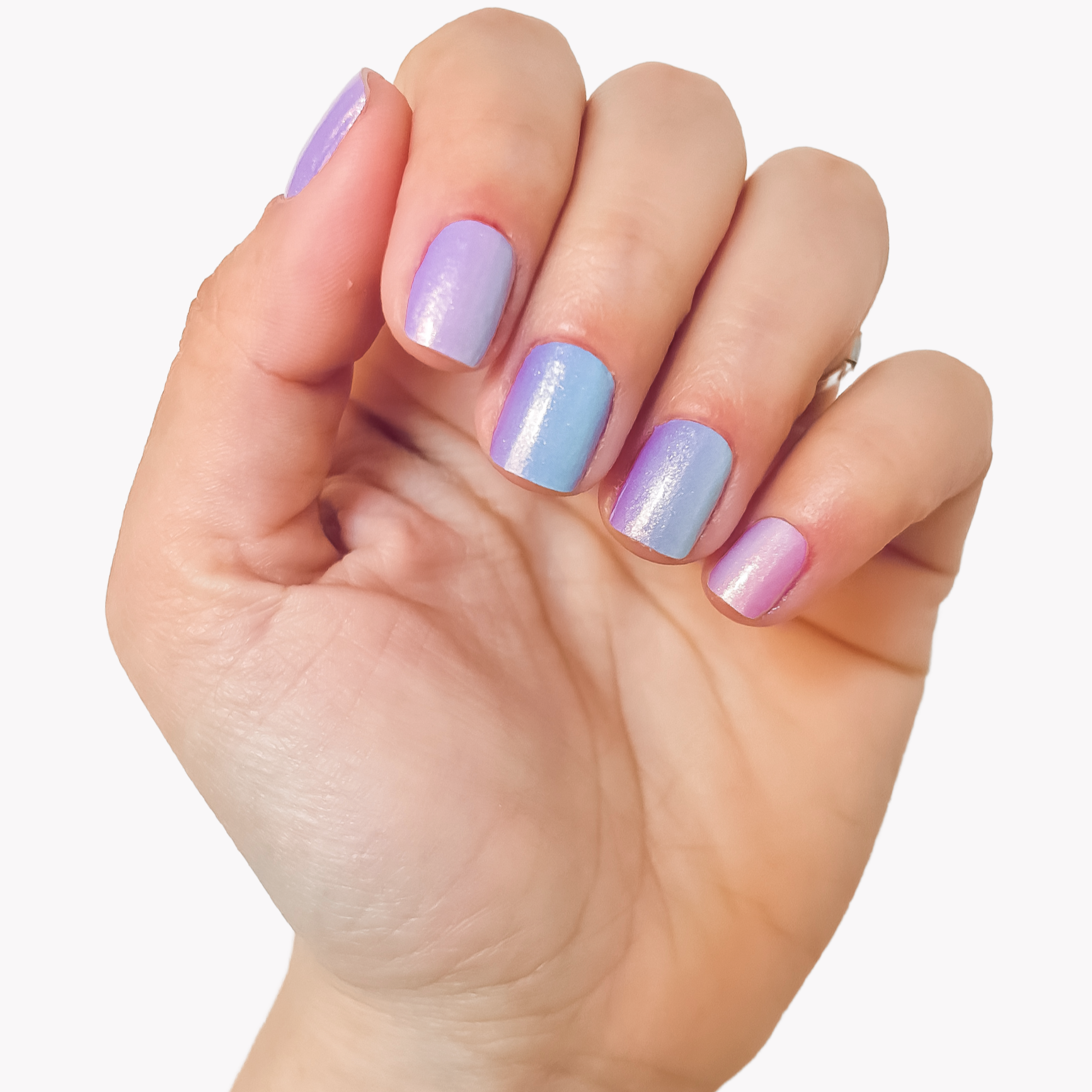 Un motif ombré horizontal dans des tons de violet, de rose et de bleu.