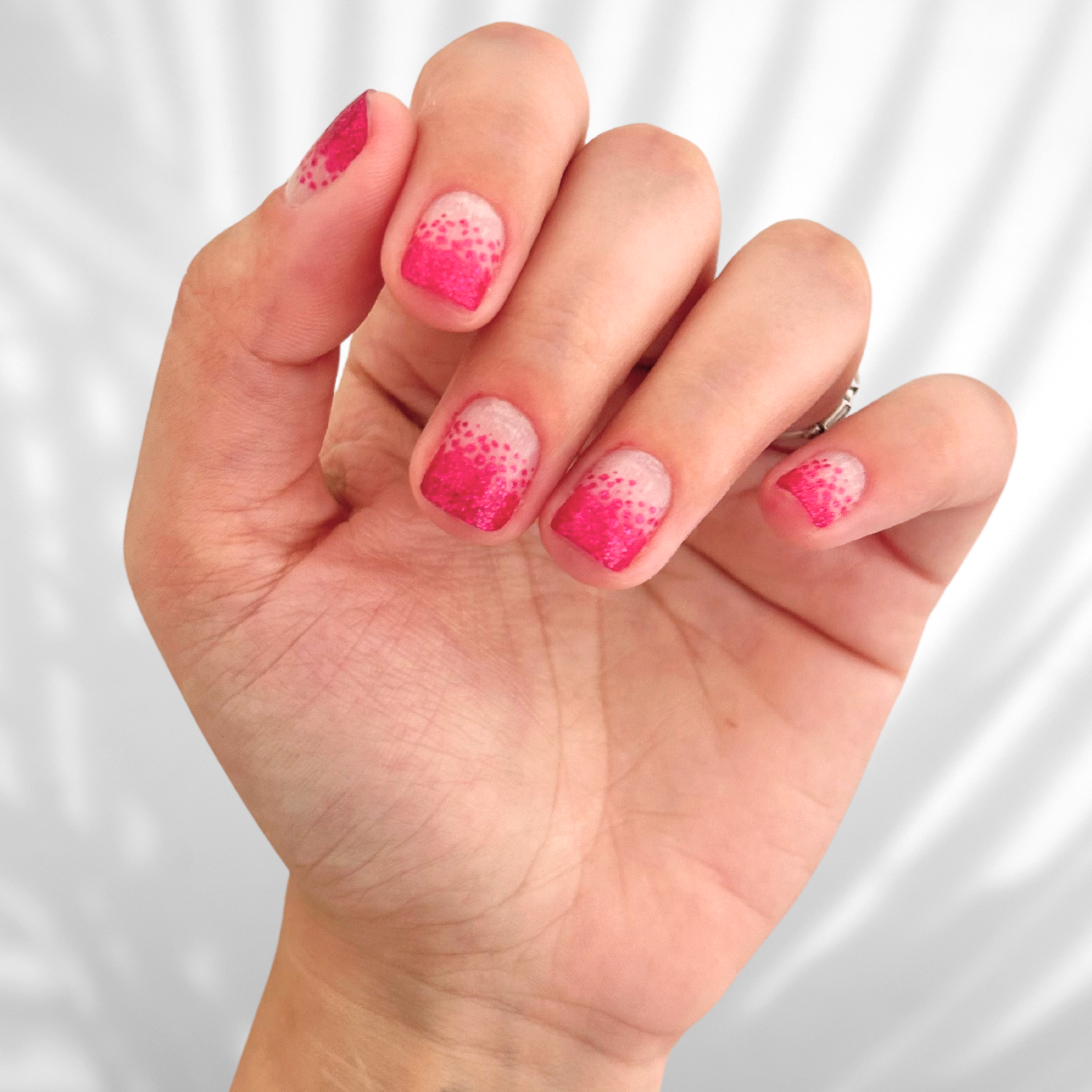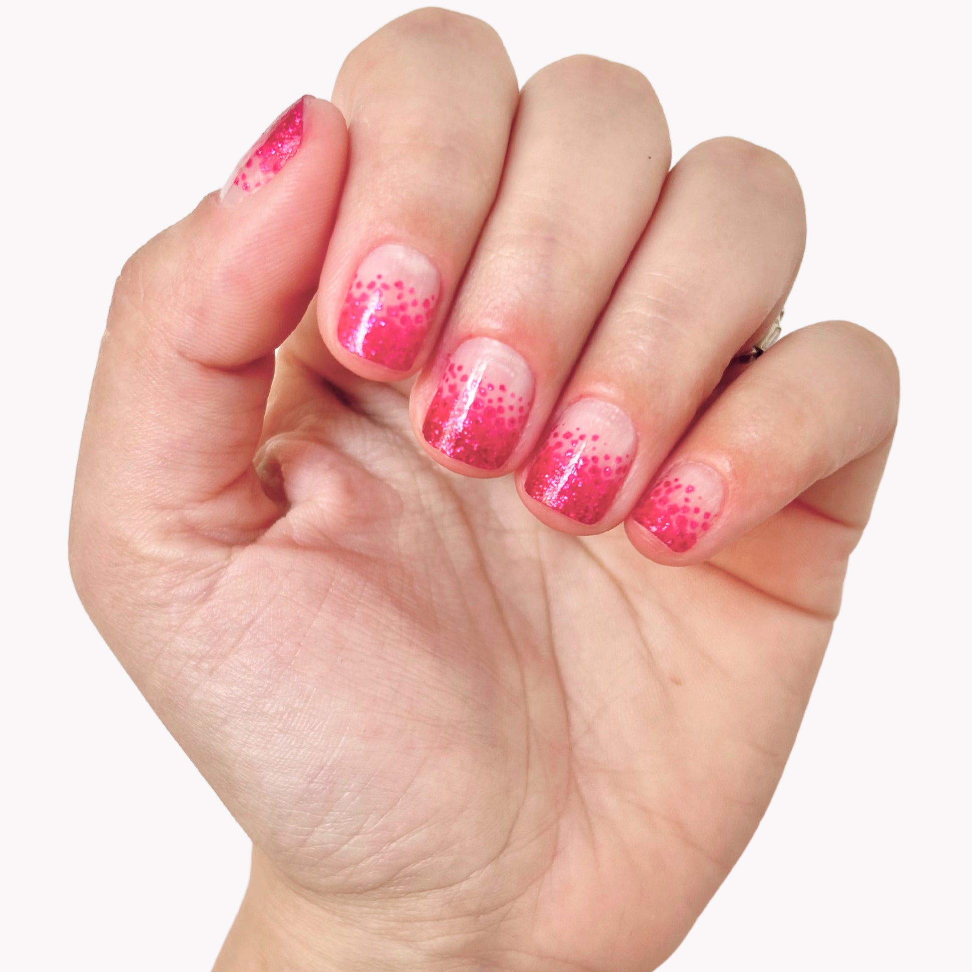 Un brillante diseño ombré de transparente a rosa oscuro, bonito y sencillo para cualquier ocasión.