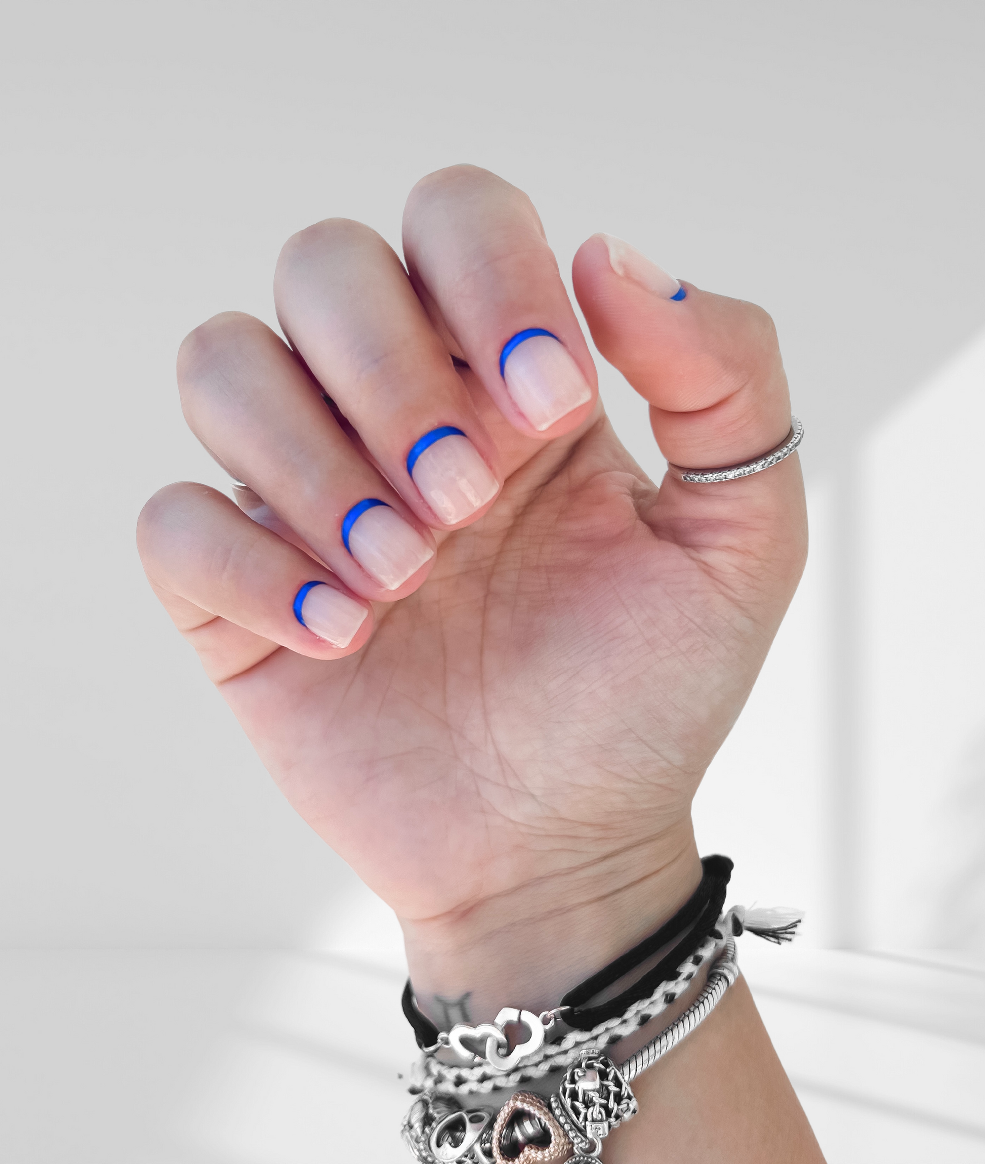 Un bello reverso azul azur francés sobre una base transparente.
