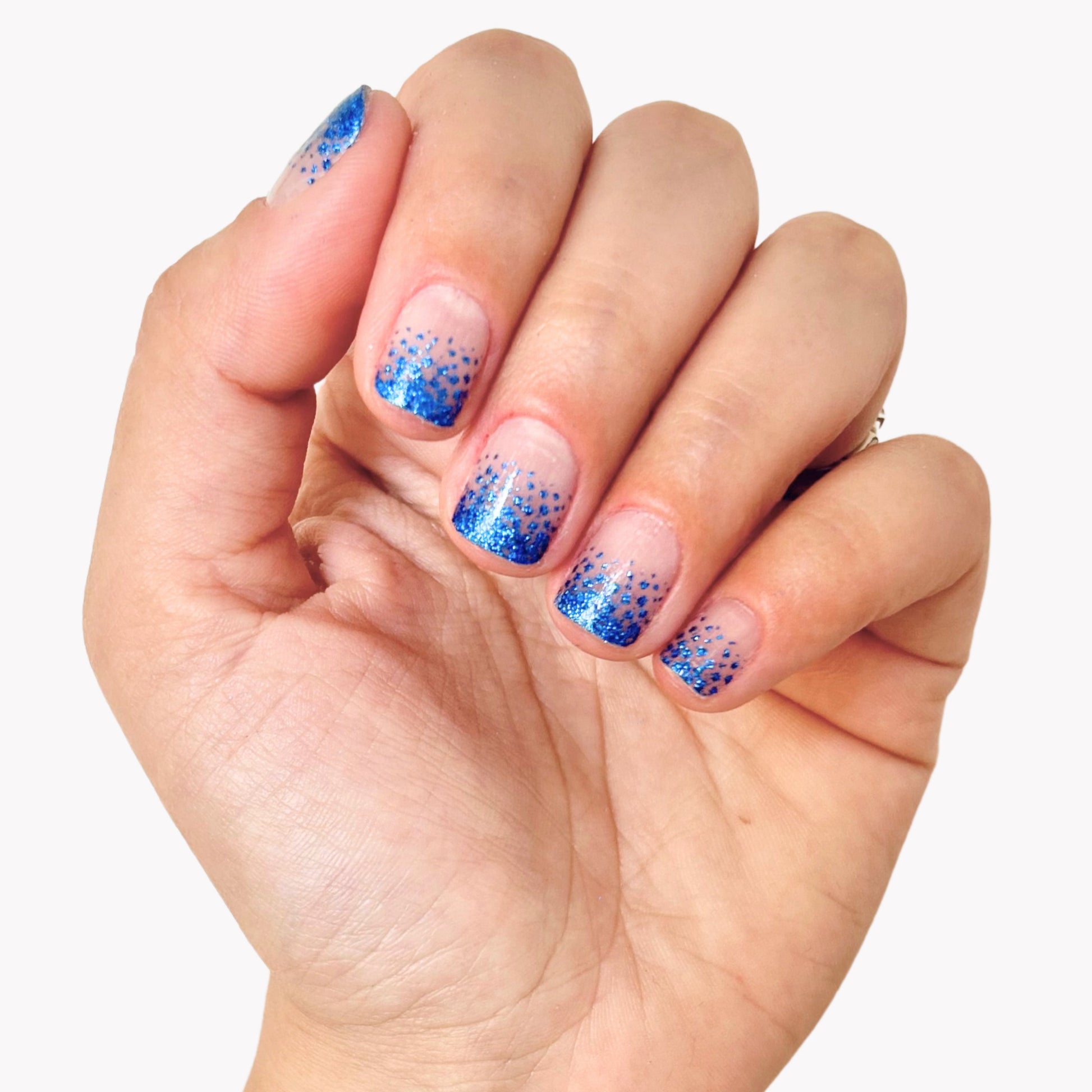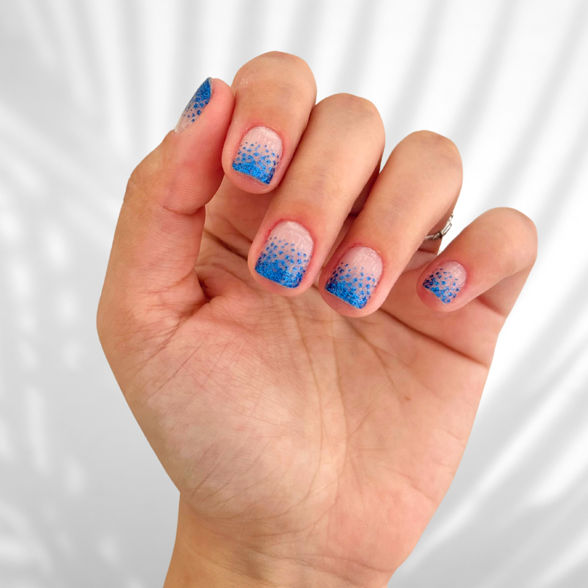 Un brillante diseño ombré de transparente a azul, bonito y sencillo para cualquier ocasión.