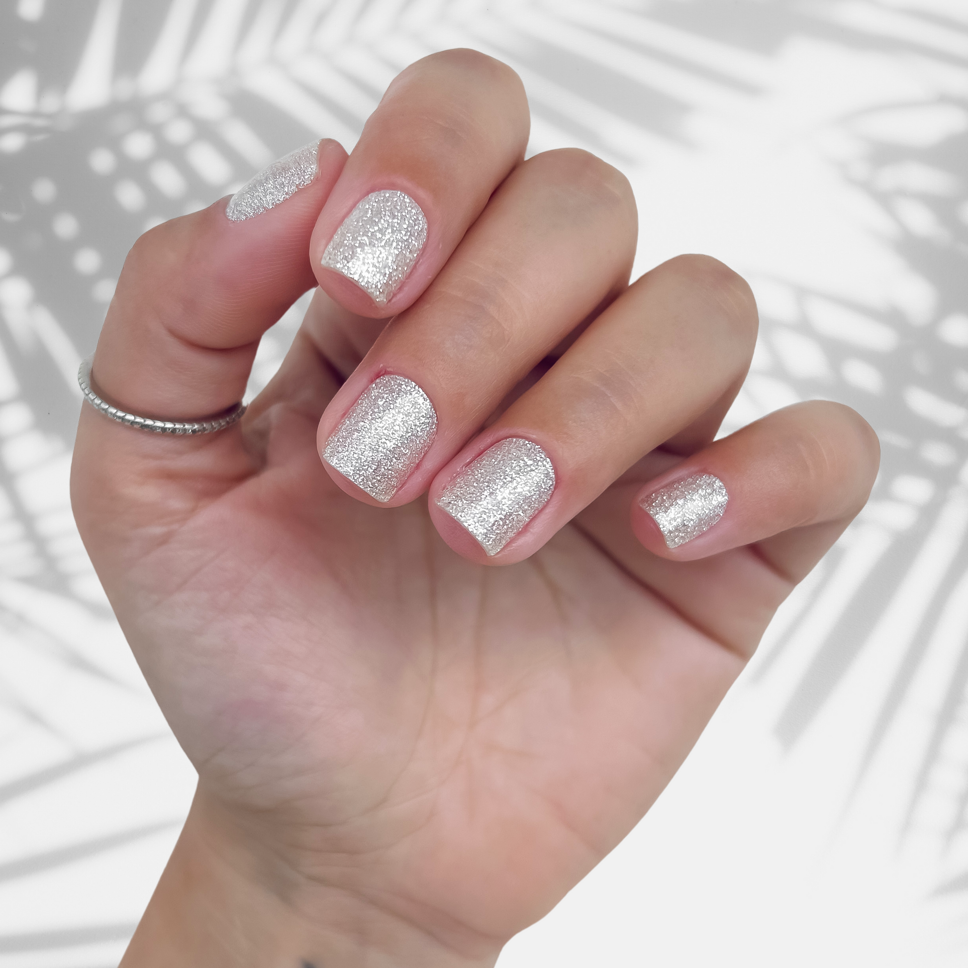 ¡El diseño de purpurina más blanco que jamás hayas visto! Gracias a sus detalles holográficos que cambian de color según la iluminación.
