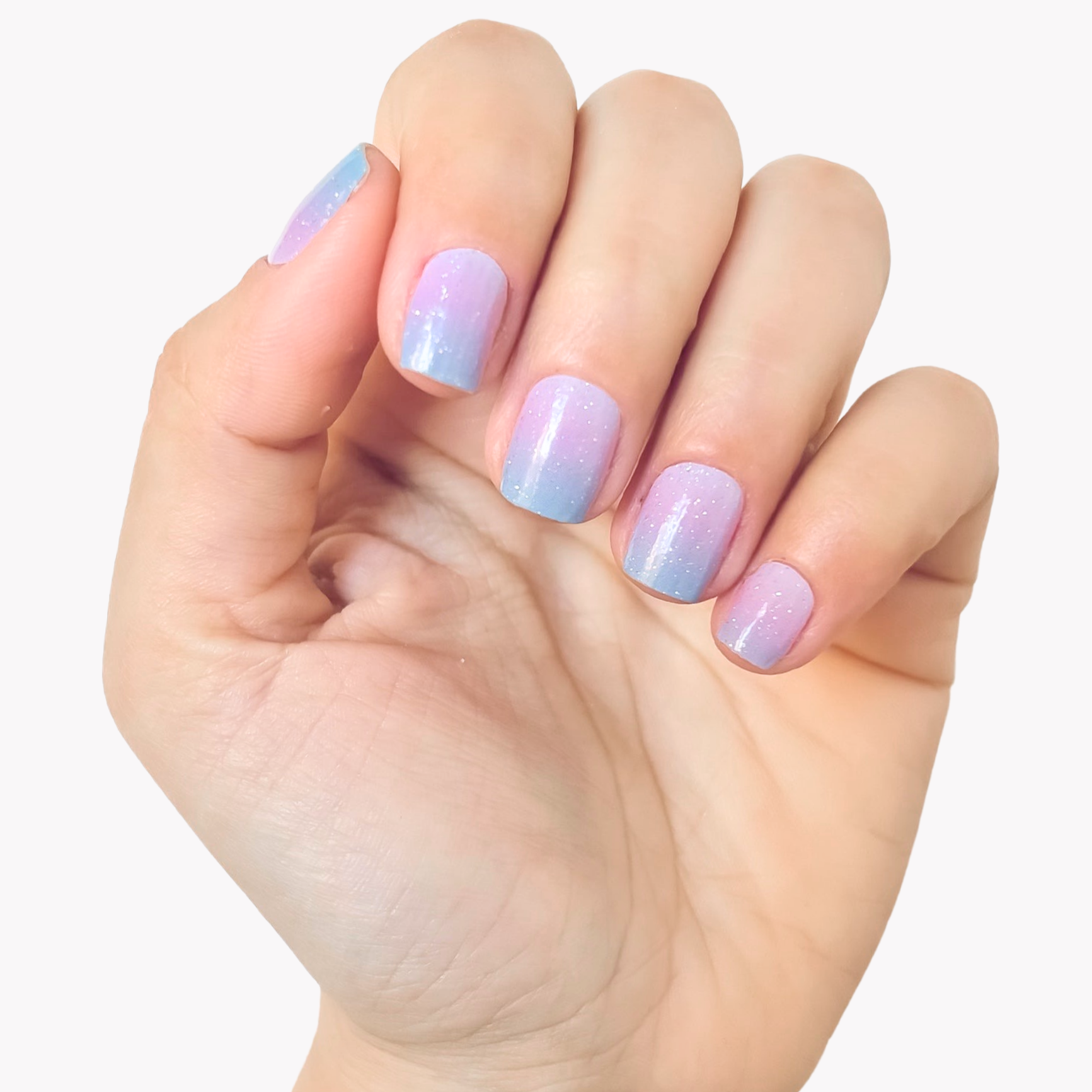 Un diseño ombré de color púrpura pastel a azul con un toque de purpurina.